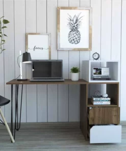 Elaborado en Madera aglomerada MDP, recubierta con láminas melamínicas de excelente calidad, en color Castaño y blanco.