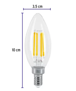 Lámpara LED tipo vela 4 W con filamento base E12 luz cálida Volteck 48253