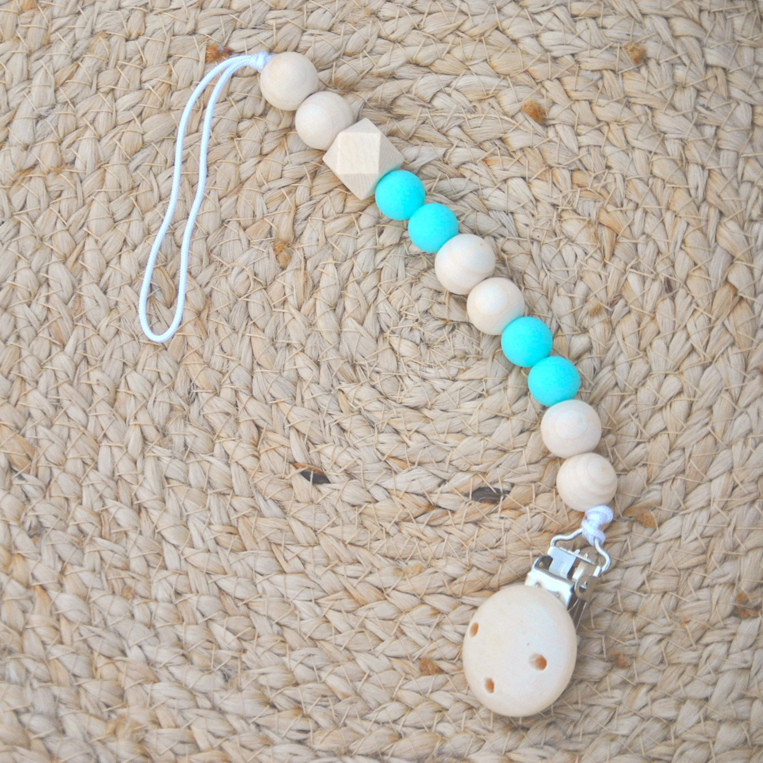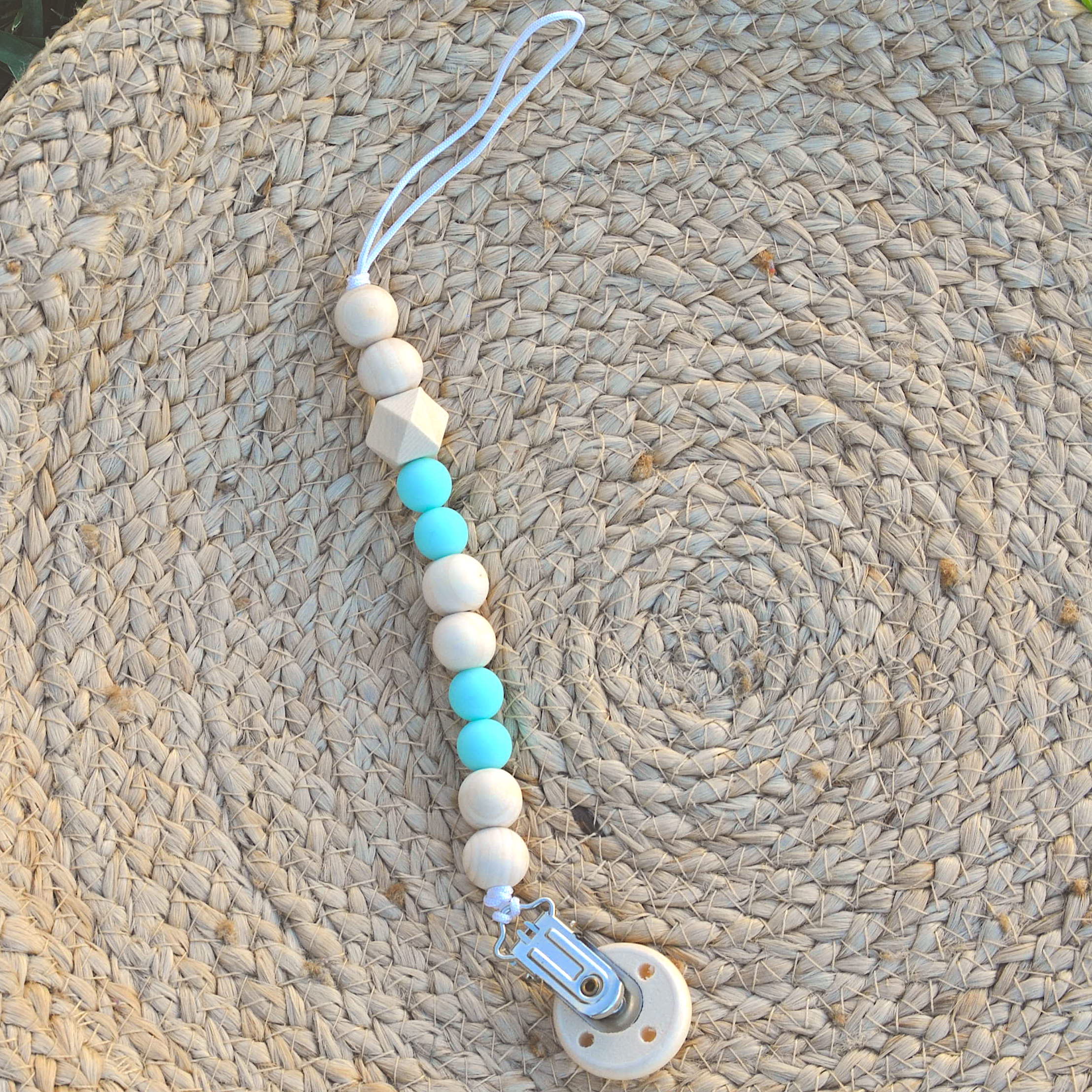 - Portachupón hecho de madera y cuentas de silicona.