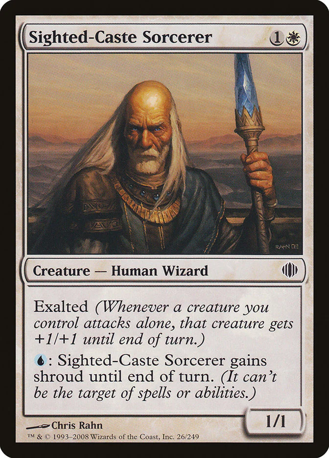 {U}: Sighted-Caste Sorcerer gains shroud until end of turn. (It can’t be the target of spells or abilities.)