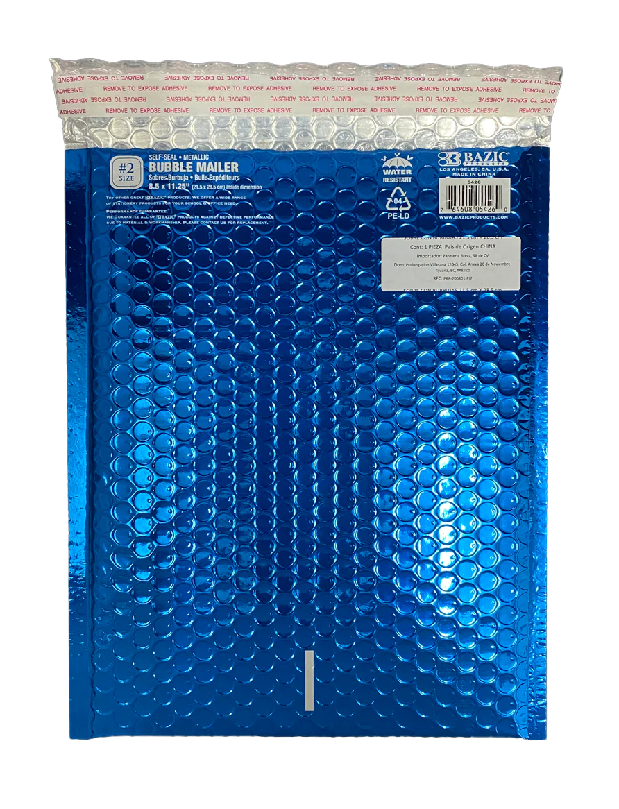 Sobre tamaño carta con protección de burbuja colores metalizados favor de seleccionar de la lista desplegable el color de su preferencia en base a las fotografías, en caso contrario se le mandará de aquel que tengamos existencia.